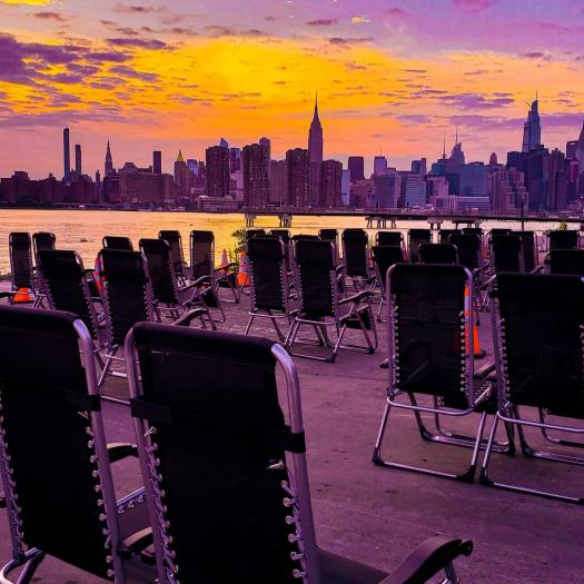 Skyline Drive-In NYC is a unique drive-in cinema experience, at 1 Oak Street. Our location, situated on the East River with killer views of the Manhattan Skyline, may seem familiar to you. Perhaps you’ve seen it on SNL? Or in a Fendi or Converse ad? That’s because Skyline Drive-In is not just for showing movies—it’s for making them too, as a photo and filming location.